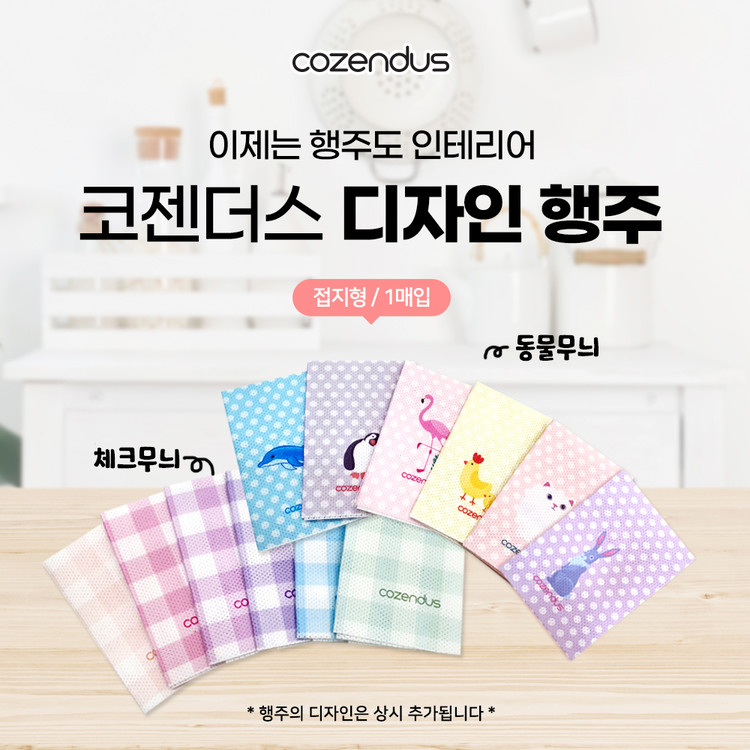 코젠더스 디자인 행주 (체크6종, 동물6종) 1PCS/팩